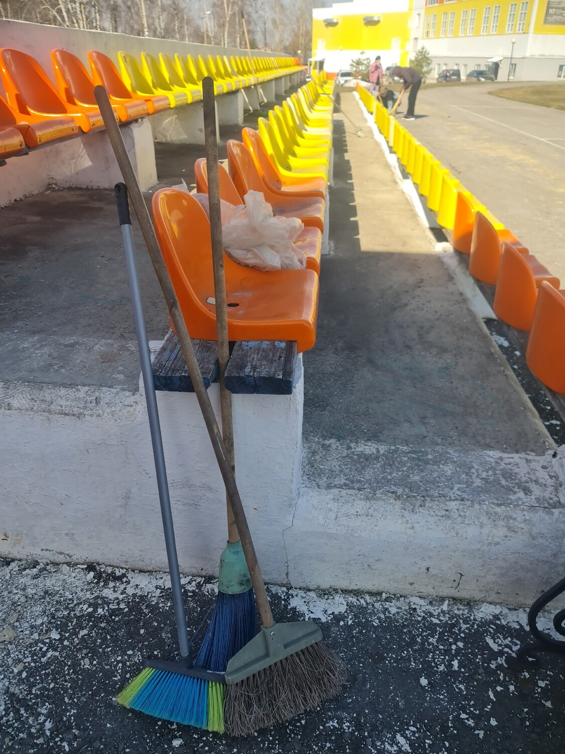 На территории спортивной школы и МАУ "КСК" идет подготовка к новому спортивному сезону.