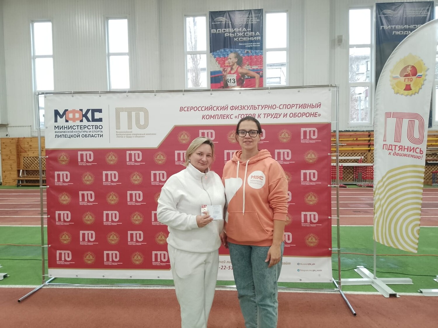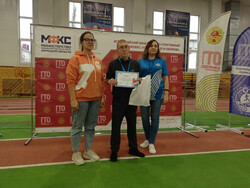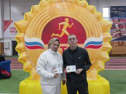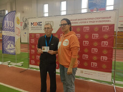Педагогу К. Ю. Моргачевой и воспитаннику Пахареву Антону директор Центра развития и мониторинга физической культуры и спорта О.С. Решитько торжественно вручила золотые значки отличия ГТО.