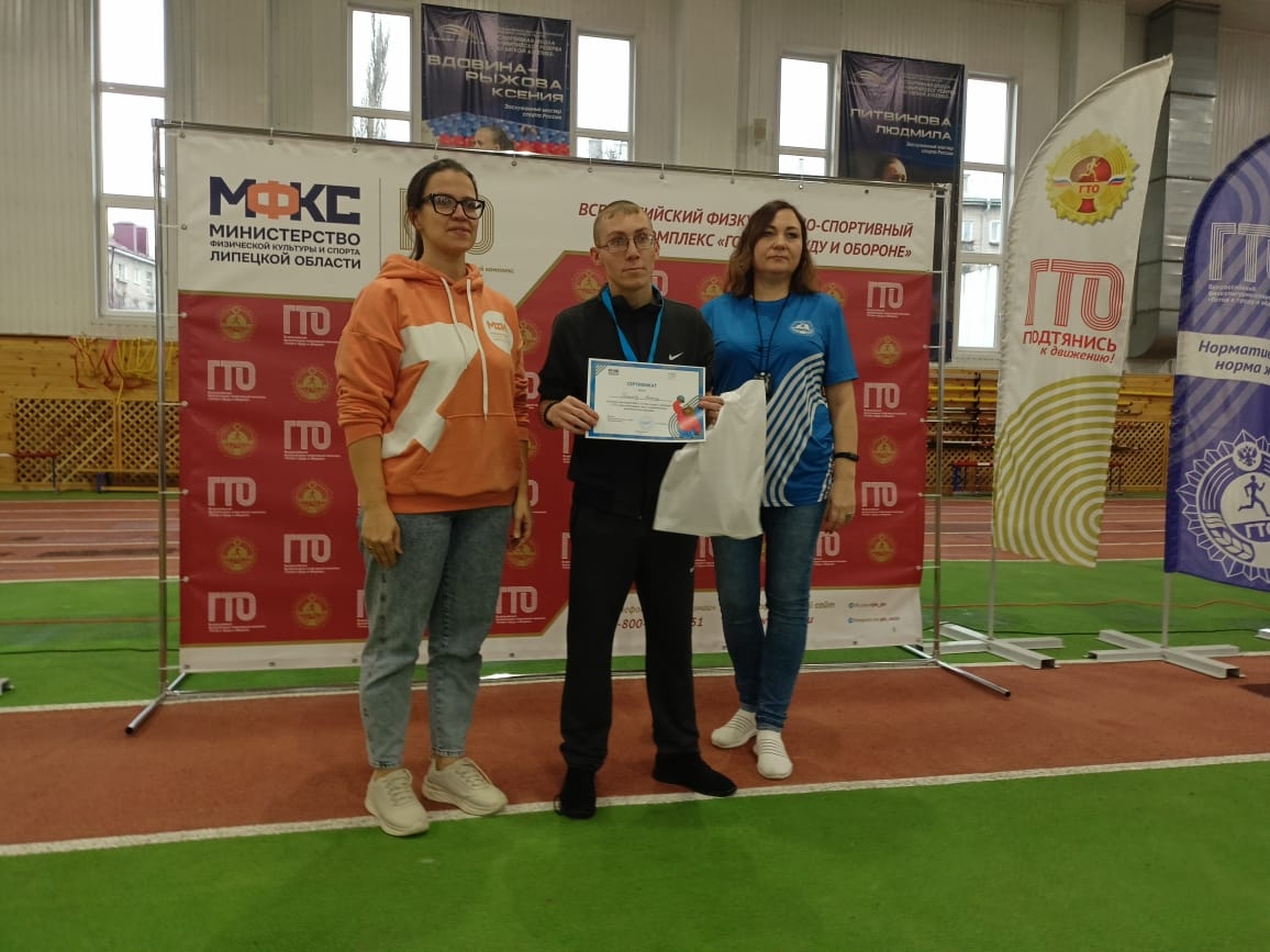 Наш округ представлял воспитанник 10 класса ГБОУ "Специальная школа-интернат с. Вторые Тербуны" Пахарев Антон под руководством классного руководителя Моргачевой К. Ю. и методиста муниципального центра тестирования МБУ ДО «Тербунская ДЮСШ» Меркуловой Н. В.