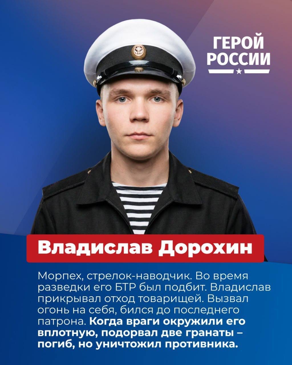 Они шли в бой не ради славы и не за медали, а за товарищей, за Родину, за Победу. В их поступках — те же сила, отвага, смелость и честь, что и у их дедов и прадедов, защитивших свою землю в годы Великой Отечественной войны. Слава Героям! |
