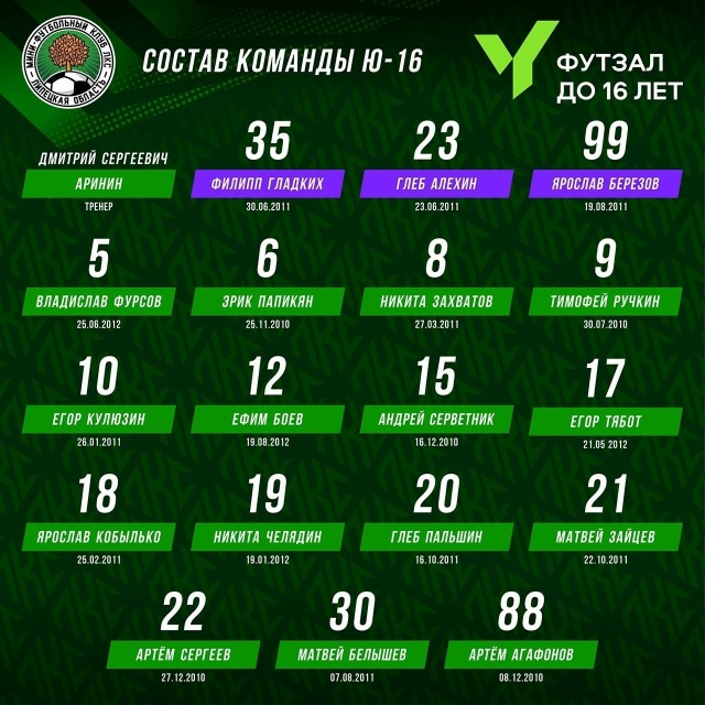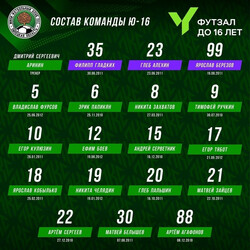 Стал известен список команды Ю-16 ЛКС г. Липецк