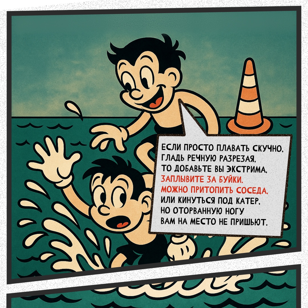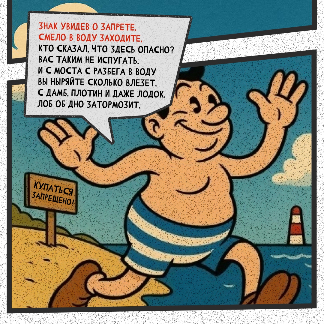Это ещё и время, когда кажется, что правила написаны для кого-то другого. Знаки «купаться запрещено» - просто декорация, а слова «я же хорошо плаваю» - железный аргумент против течения, судорог и внезапной глубины.