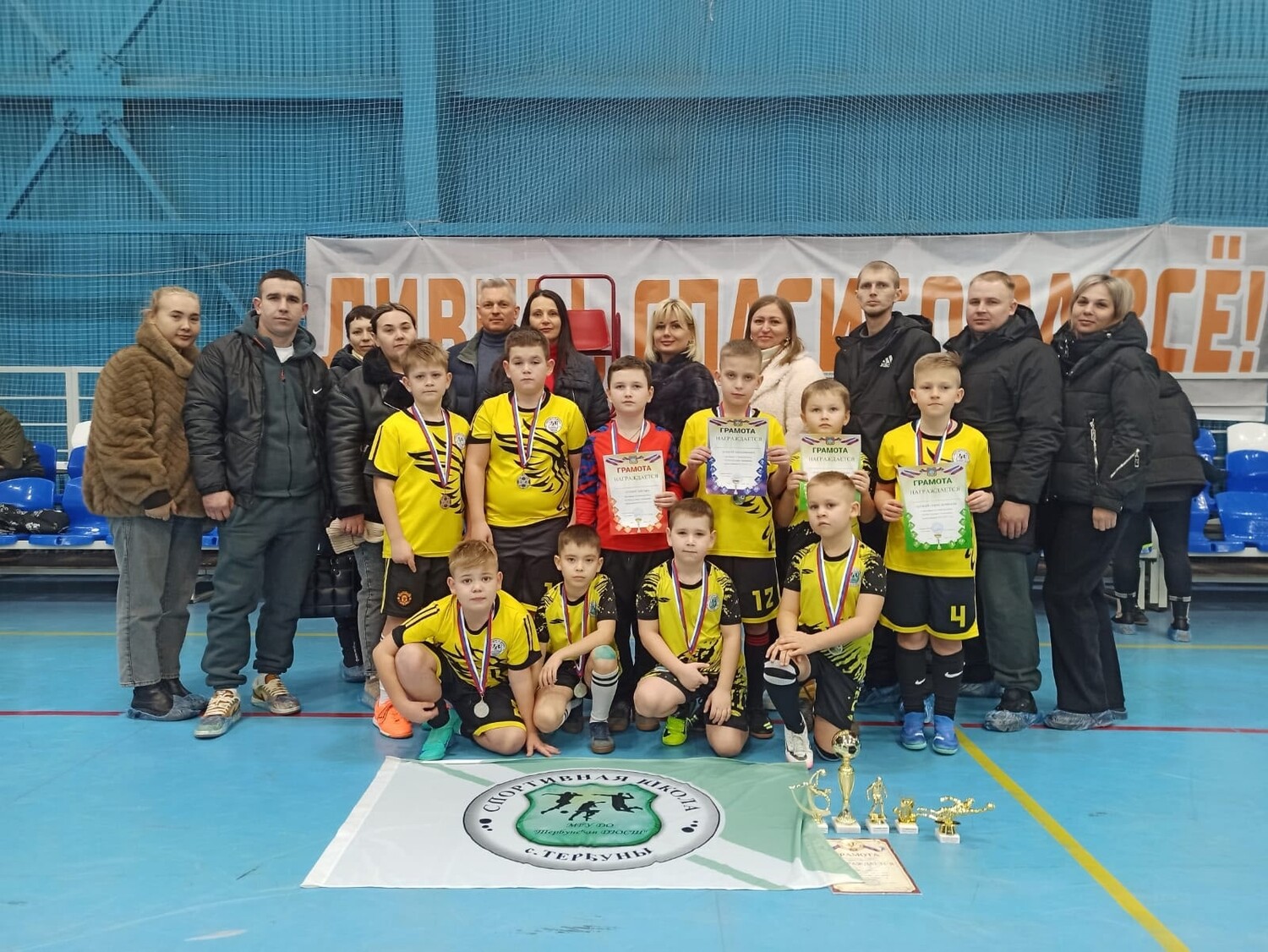Лучшими болельщиками -признаны родители Тербунской ДЮСШ, которые очень активно и ярко болели за команду и поддерживали ребят на протяжении всего турнира.