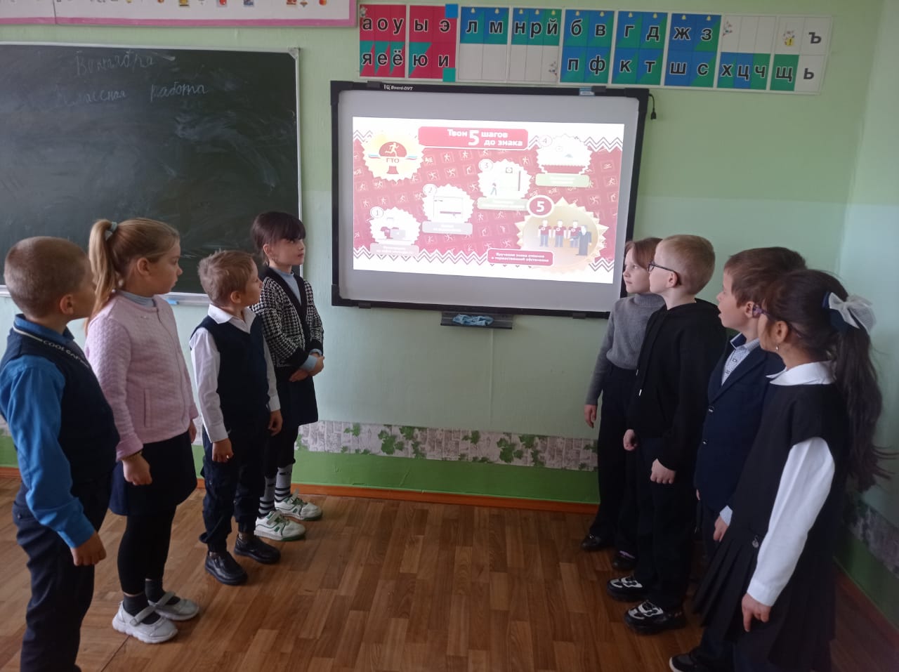На Уроке ГТО ребята познакомились с историей возникновения комплекса ГТО, со знаками ГТО Советского Союза и современными, с возрастными ступенями, с видами испытаний и символами ГТО.