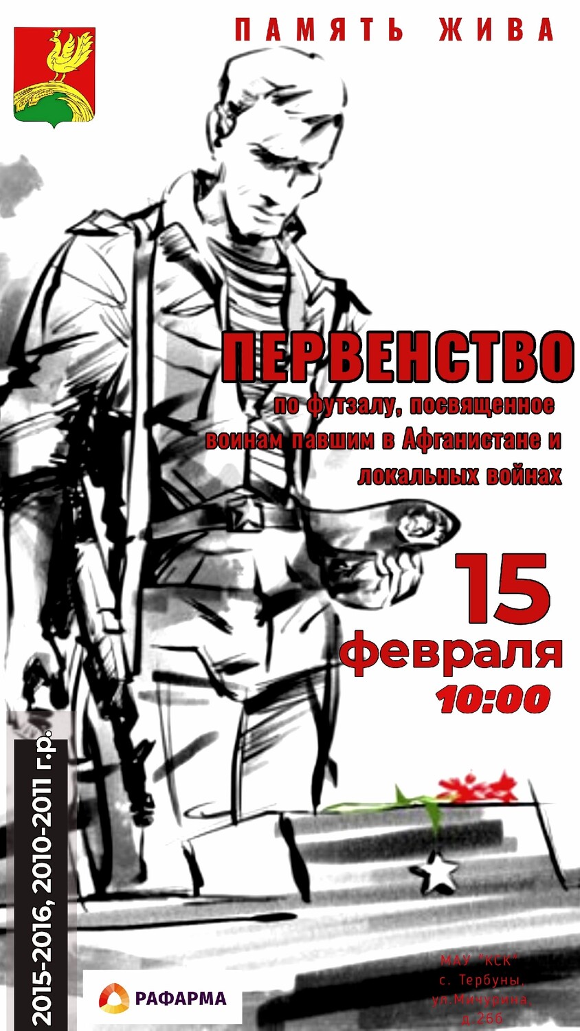 15 февраля в спортивном зале МАУ "КСК" состоится первенство по футзалу среди юношей, посвящённое воинам павшим в Афганистане и локальных войнах.