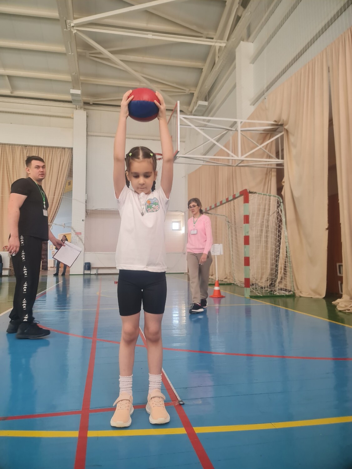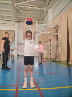 Номинация «Бросок набивного мяча весом 1 кг из-за головы»: